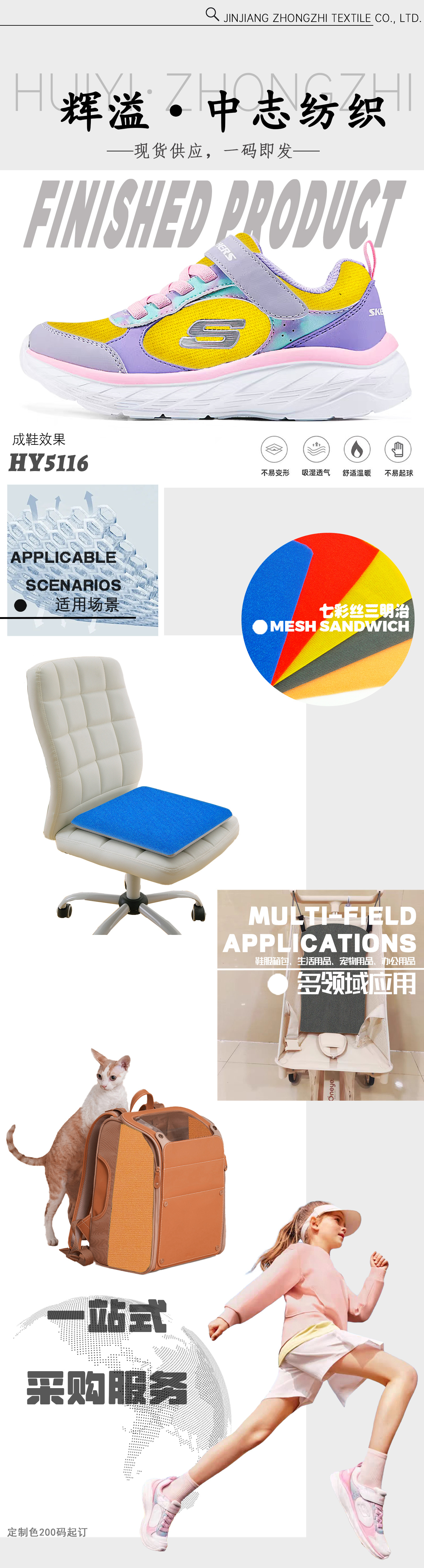 In terms of innovation, we are thrilled to share that our research and development team has successfully created a diverse range of new mesh materials this year.They include sandwich mesh, fishnet and creel mesh, and a range of the latest jacquard uppers designed to meet evolving market needs. Each product reflects our commitment to creativity, functionality, and sustainability.